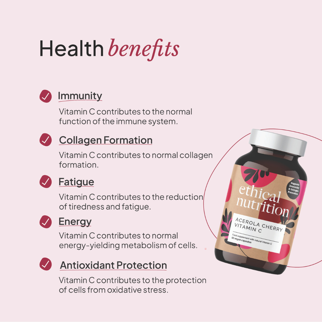 Many people struggle to meet their daily needs for vitamin C which is where our Acerola Cherry supplement comes in handy.